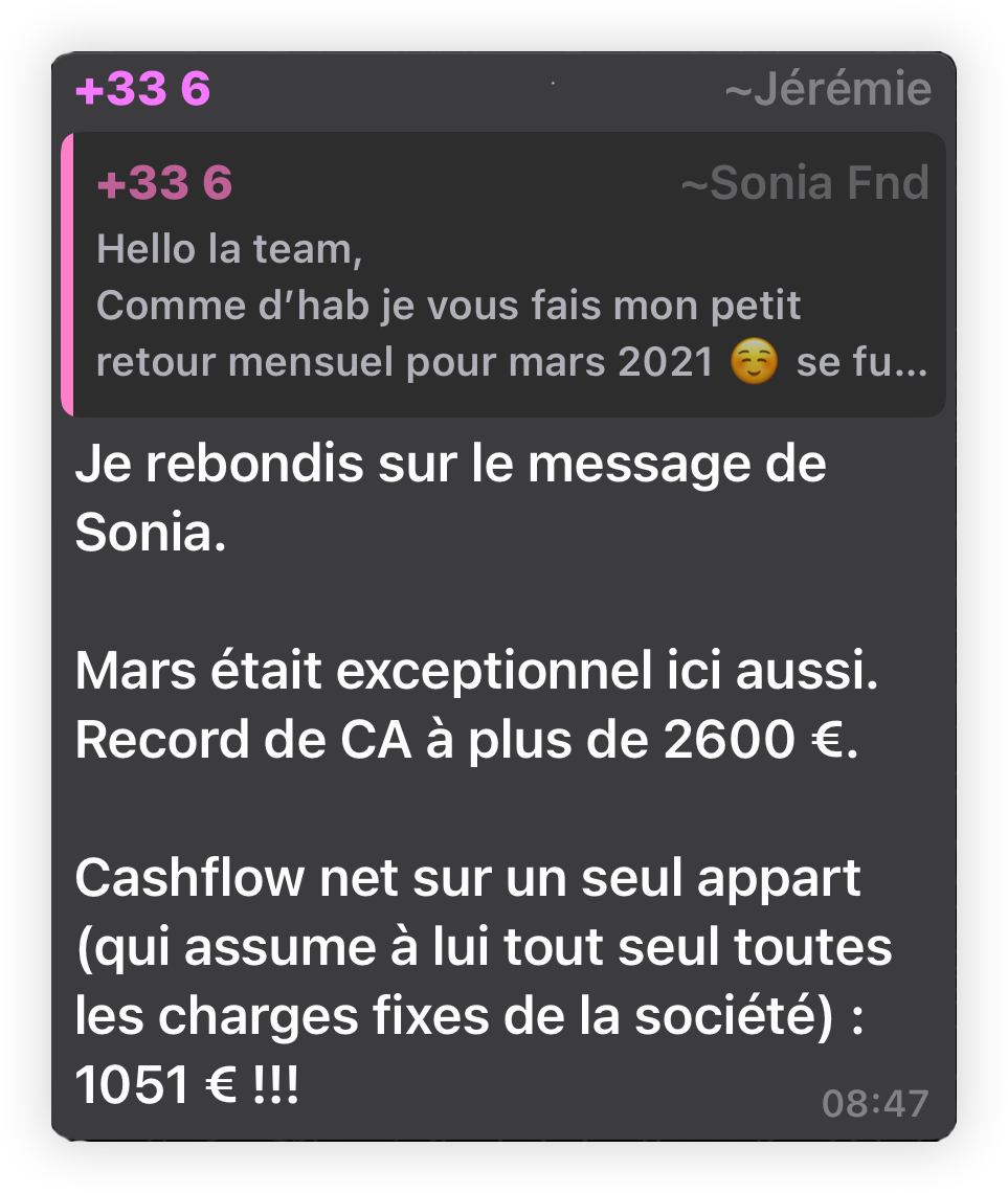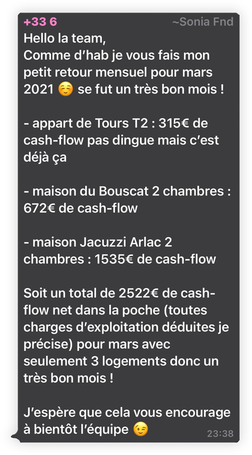 Un studio en gestion peut rapporter +300€/mois, un T3, +600€/mois ...
